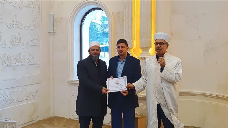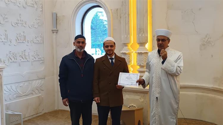 Müftülüğümüz tarafından görevlilerimize yönelik olarak düzenlenen Ezanı Güzel Okuma Hizmet İçi Eğitim kursunu başarı ile bitirenlere başarı belgeleri, Solmaz Akduman Camii’nde düzenlenen sabah namazı buluşması programında verildi.
