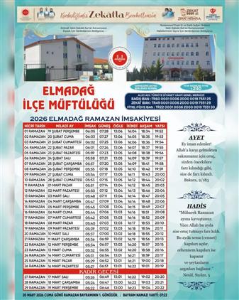 Elmadağ Müftülüğü 2026 Yılı Ramazan Ayı İmsakiyesi