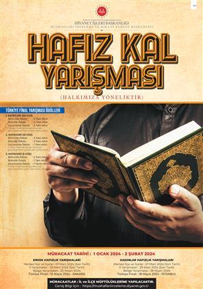 Diyanet İşleri Başkanlığı - Mushafları İnceleme ve Kıraat Kurulu Başkanlığı tarafından 2024 Yılı “Halka Yönelik Geniş Katılımlı Hafızlık Yarışması” düzenlenecektir.