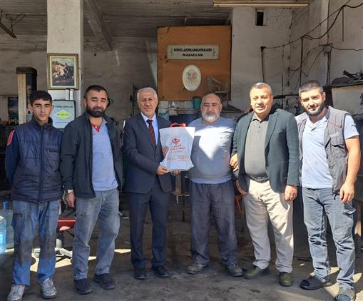 Ardından hep birlikte esnaflarımız ziyaret edildi. Ziyarette Müftümüz, esnaflarımıza helal ve bereketli kazanç duasında bulunarak Başkanlığımız yayınlarından Mealli Kur’an-i Kerim başta olmak üzere muhtelif kitaplar hediye etti. Sanayi Sitesi Kooperatif Başkanı Mehmet Aktay’da Müftümüzle birlikte esnafa bayrak hediye etti.