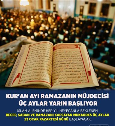 İslam aleminde her yıl heyecanla beklenen recep, şaban ve ramazanı kapsayan mukaddes üç aylar 23 Ocak Pazartesi günü başlayacak.