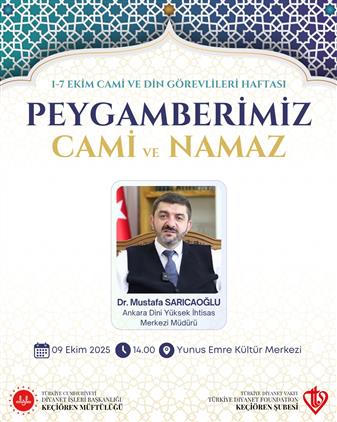 Keçiören Müftülüğünce, “Peygamberimiz, Cami ve Namaz” temasıyla anlamlı bir konferans programı düzenlenecektir.